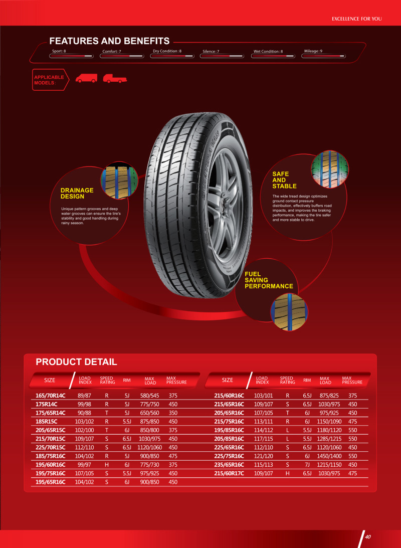 輕型商用車(chē)用輪胎,獨特的花紋溝,深排水槽,有較好的排水性和經(jīng)濟燃油性。