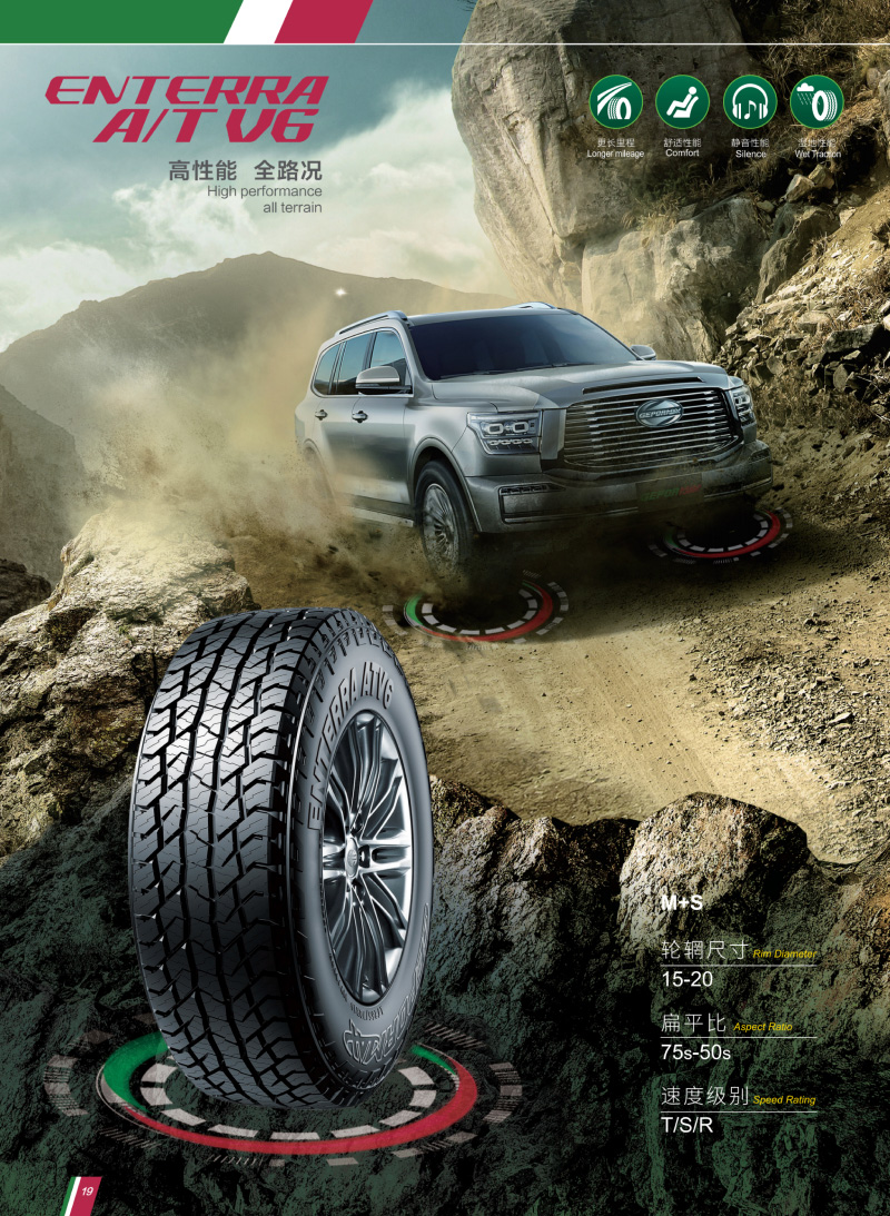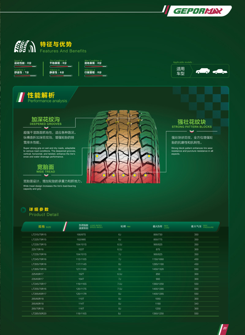 高性能越野輪胎,強壯花紋塊和胎體,能適應各種惡劣路況。