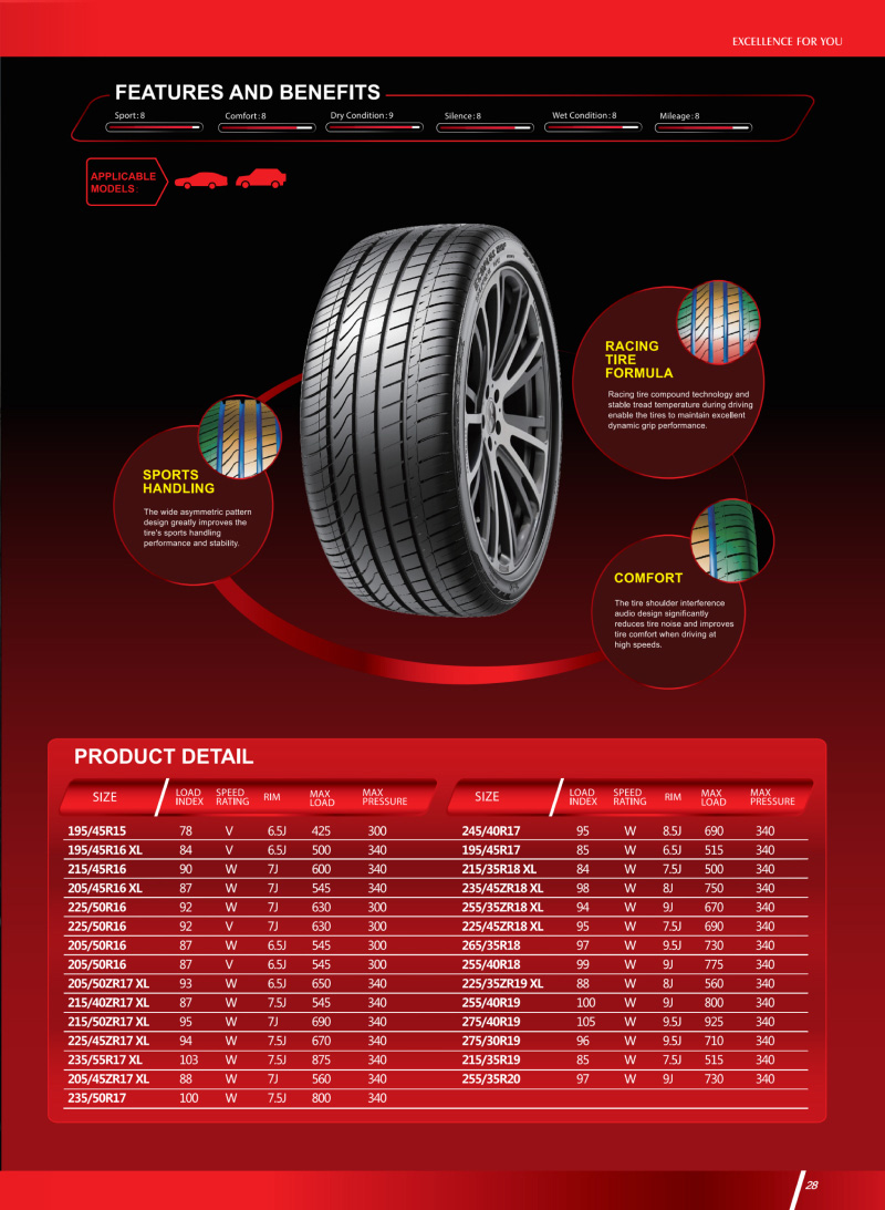 出眾的操控性能,運動(dòng)型輪胎中不可多得的兼具舒適性,駕乘更流暢、更舒適。