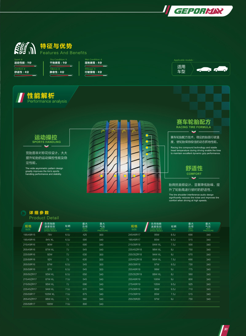 出眾的操控性能,運動(dòng)型輪胎中不可多得的兼具舒適性,駕乘更流暢、更舒適。